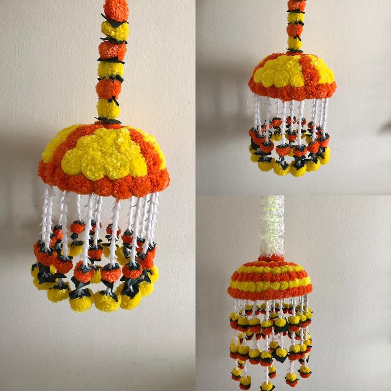 Bring a burst of traditional charm and festive colour to your space with our beautifully handcrafted Floral Chatar Hanging. Inspired by classic Indian décor, this chatar-style hanging features a dome-shaped floral canopy adorned with vibrant artificial marigold flowers in joyful yellow and orange hues, symbolising positivity, prosperity, and celebration.