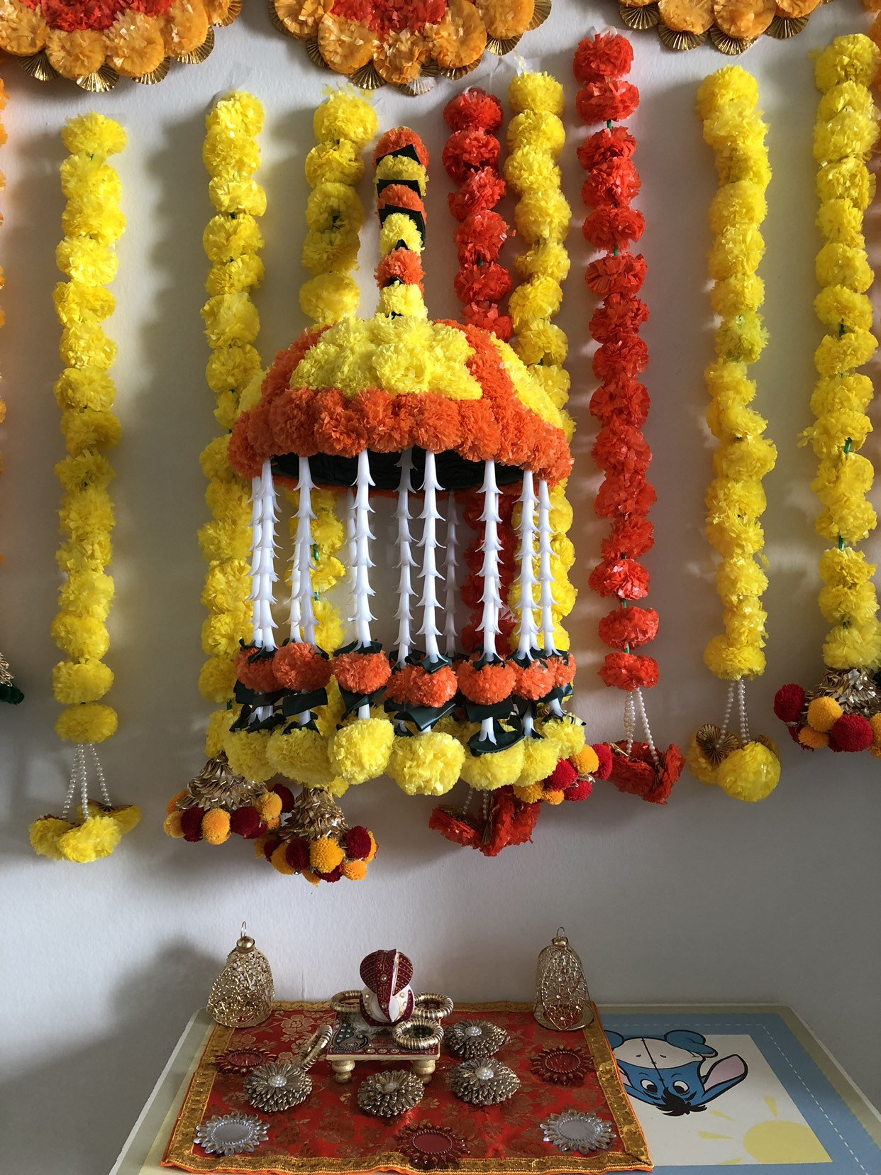 Perfect for mandir décor, pooja rooms, weddings, festivals, housewarming ceremonies, Diwali, Navratri, or traditional home styling, this floral chatar instantly elevates any wall, corner, or backdrop.